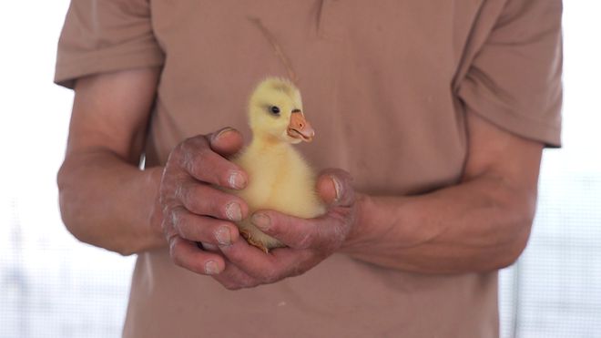 下午,记者在双城扬州鹅养殖示范基地内看见,一群毛茸茸的小黄鹅摇摇晃晃地探着脑袋,在暖棚里嬉戏觅食。据悉,这批5000只鹅苗来自扬州援陕农产品商贸有限公司捐赠,它们的父辈则是2024年从扬州跨越1300多公里落户榆林的“先锋部队”,这批鹅苗也是标准的“鹅二代”。