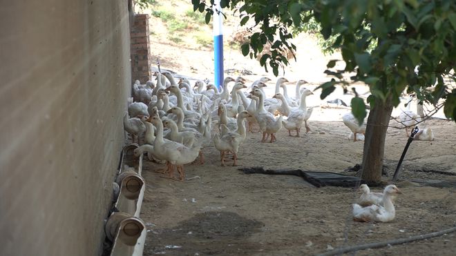 今年60岁李生宏是养殖示范基地附近的村民,从去年开始在这里工作,他说,以往都是打零工,有时没活就干不上,收入不稳定,如今每个月稳定收入在5000多元,非常满意,当地百姓将“扬州鹅”亲切地称呼为“榆林大鹅”。